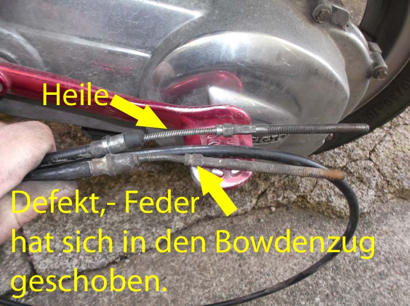 | -schlechte Bremswirkung | -harte Bremsbeläge sind oft die Ursache,dann Bremsen erneuern, ansonsten nachstellen an Stellschraube oder der Bowdenzug ist defekt - Blemsklötze verschlissen. - Scheibenbremse: Bremszange zerlegen - Scheibenbremse: Luft im Bremssystem -Bei Hinterradbremse: Wellendichtring am Getriebe ist undicht. Folge: Bremsbeläge ölig rund rutschen durch [BILD 1] [BILD 2] |